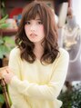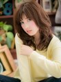 【スタイルは★ブックマーク★が便利】斜めバングとゆるふわくせ毛風カールのテッパンモテスタイル。ダークカラーをオンすることで知的で大人かわいい雰囲気に。顔周りのリバースカールで甘くガーリーに、前下がりラインで小顔に♪厚めバングや耳かけもcute☆