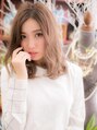 【スタイルは★ブックマーク★が便利】赤味のないアッシュ系やベージュ系ハイトーンカラー&くせ毛風アンニュイカールで外国人風な印象☆斜めバングやセンターパートでフェミニンに、厚めバングやワイドバングも大人かわいい。前下がりで小顔効果もバッチリ。