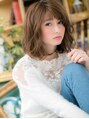【スタイルは★ブックマーク★が便利】レースのようなゆるふわ質感のくせ毛風カールがガーリーなエアリーミディ。厚めバングや斜めバング、耳かけも大人かわいい。前下がりフォルムで小顔に見せてもGOOD!ナチュラルボブや大人ボブからのイメチェンにも◎