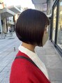 オレンジブラウン透明感ボブミニボブツヤ髪スタイル
