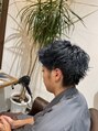ブルーグレージュツーブロック刈り上げパーマ10代20代30代