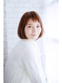 ショートバングがポイントの内巻きワンカールボブスタイルです。扱いやすく女性に人気なスタイルです。