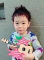 キッズのカットになります!キッズルームもあります。積み木、ゲームも完備しております。小さなお子様はお母さんと二人羽織みたいにカットできるカットクロスもございますので抱っこした状態でカットできます!