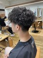メンズパーマで人気のスパイラルパーマにツイスト質感をミックス☆ツーブロック、刈り上げを入れるとスッキリとシルエットも決まります☆スタイリングが簡単でメンズヘアにパーマはマスト☆朝の時短スタイリングはツイストスパイラルパーマで決まり☆