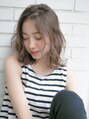 ナチュラルな明るめアッシュブラウンで、柔らかさを強調。ひし形のショートを無造作なカールで大人な雰囲気を。バーム系のスタイリング剤で柔らかく、くしゃっと揉み込むようにセット。柔らかいナチュラルカラーが際立ちます。