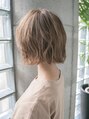 ナチュラルな明るめアッシュブラウンで、柔らかさを強調。ひし形のショートを無造作なカールで大人な雰囲気を。バーム系のスタイリング剤で柔らかく、くしゃっと揉み込むようにセット。柔らかいナチュラルカラーが際立ちます。