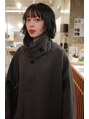 毛先に厚みを残したフェイスレイヤーボブ。前髪を深めにつくって、耳にかけたら厚みが出るように調整、重たく見えすぎないように寒色で透明感のある黒で仕上げてます