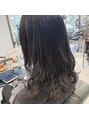 ベースはワンブリーチしてありメリハリのあるグレーグラデーション。根元が黒に近いグレーから毛先は透明感あるカラーに。巻くとさらにメリハリが出てオシャレカラーの完成