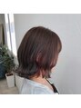 切りっぱなしミディstyle♪カラーは、ベースはパールグレージュインナーカラーで赤み系ピンクブラウン(^^)耳にかけるだけで可愛いです!