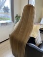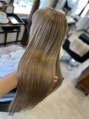髪質改善トリートメント、カラーメンテナンスM3Dトリートメント、サラサラロングヘアハイトーンカラー白髪ぼかしカラーミルクティーカラー、イエローベージュカラー