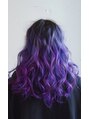 根元は地毛の黒を残し毛先のブリーチ毛にマニックパニックでバイオレット、ショッキングピンクピンクバイオレット、ブルーパープル、、etcをランダムに入れたstyle◎クールで個性的な印象に!!!