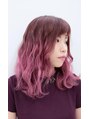 毛先にブリーチを施し根元から毛先にアルカリカラーのピンクをON!!!!!少し特殊な染料でなんと!!太陽の光で反応します!外で見るとより鮮やかです!!!!