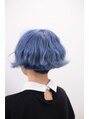 ブリーチ複数回必須!!ブルーをグレー、シルバー、で微調節して作った絶妙カラー!!カットはサイド襟足刈り上げショート!
