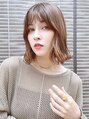 26mmで外ハネし顔まわりリバース巻き【気に入ったスタイルは「ブックマークする」ボタンを押して、ご来店時ご提示ください】ノームコア,フレンチボブ,暖色系カラー,パーマボブ,ブルーグレージュ,シークレットハイライト,刈り上げショート,くびれヘア