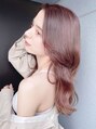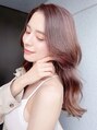 32mmのコテでリバース巻きしオイルでウェット仕上げ【気に入ったスタイルは「ブックマークする」ボタンを押して、ご来店時ご提示ください】セシルカット,オルチャンヘア,ツートーンカラー,シルキー,ペールピンク,前髪編み込み,ダークグレージュ