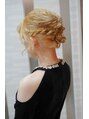 サイドに編み込みを入れながら、全体をねじりでまとめた上品なアップスタイル。後頭部には程よいボリュームを出し、華やかさと立体感を演出しています。顔まわりの後れ毛は柔らかくカールをつけ、女性らしさを引き立てる仕上がりに。