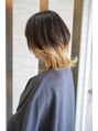根元のダークトーンから毛先にかけてブロンドへと自然につながるグラデーションカラー。レイヤーを入れたボブベースにすることで、動きと軽さが生まれ、スタイリング次第でモードにもカジュアルにも振れるデザイン。退色過程も楽しめる。