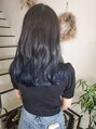 ブラック×ネイビーブルーのグラデーションです!ハイライトが仕込んであるのでバツっとしずに自然で中間も綺麗に発色してくれてます!ゆるいウエーブとの相性◎