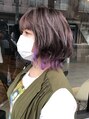 グレープフレイバーの駄菓子のようなポップなパープルのインナーカラーです。表面のベースにはハイライトを入れさせて頂き暗めでも透け感のあるカラーになっております。