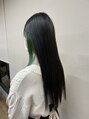 カーキグレージュのベースに鮮やかなグリーンのインナーカラーを入れさせて頂きました!暗めのカラーと鮮やかなカラーの組み合わせはデザインが映えてくれるためとてもおすすめです。