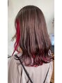 鮮やかなスカーレットのインナーカラーです!インナーの範囲をちょっと広めに取っておくと後ろの方も毛先からチラチラっと色が見えてとっても可愛いです!