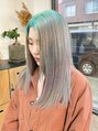 根元は鮮やかなミント、ベースはシルバーカラーに淡くレインボーが滲むようなシャボン玉をイメージしたカラーをさせて頂きました!誰とも被らないオリジナルのカラーはお任せください!