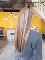 白髪を目立ちにくくするために、全体ブリーチをしてからハイライト、ローライトを入れさせて頂きました!デザインを楽しみながら白髪と向き合えるデザインカラーです!