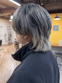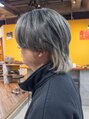 男性のウルフスタイルにデザインカラーを入れさせて頂きました!全体をブリーチしてから表面は深みのあるグレー、襟足にはホワイト系のカラーを入れさせて頂いています。男性のデザインカラーも是非お任せください!