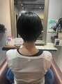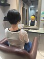 初めてのお客様です。ご自身で前髪をカットし、丸くなるのが少し気になるとの事でご来店下さりました。あまりカットするところはなかったのですが、襟元の括れなど締めれる部分は締めてスッキリとしたショートスタイルです。とてもお似合いですね。