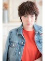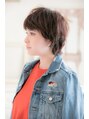 耳に軽くかけられる長さでマッシュベースにカット。ピンを織り交ぜたニュアンスパーマで、自然なくせ毛風に。カラーは赤みのあるピンクラベンダーで上品に。