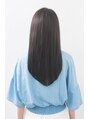 王道なストレートロングに見せて、どこか個性的な雰囲気が漂うスタイル。矯正のしゃきっと感ではなく、ゆるやかに柔らかくさせる事で艶と視線はずしになっている、計算されたスタイル。