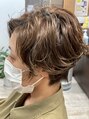 両サイドはバリカンを入れ、ボリュームダウン!前下がりショートに緩めのパーマをかけて動きをプラス