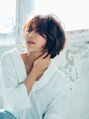 髪の色はオレンジみのあるベージュカラー、大きめのカールが全体にかけてあります。前髪は長めで、アンニュイな雰囲気が大人っぽくて女性らしい色気もでておしゃれです♪ [髪質改善/イルミナカラー/白髪染め/眉毛/代々木]
