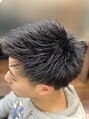 直毛横張りのスタイルでも大変身!!ツーブロックを入れアップバングのセットで束感、すっきりしたスタイルに!!形状記憶パーマをかけてもオススメです!!