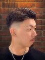 周りをフェードカットにして、トップにパーマをかける事でセットを楽に。短髪でスッキリしながら男らしいスタイルです!
