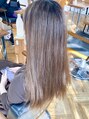 - ケアブリーチを使用したハイライトでヌーディーカラーに。ハイライトとバレイヤージュの組み合わせです。