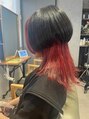 20代30代ウルフ肩ラインダブルカラーレッドインナーカラー
