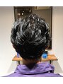 スパイダーマンのピーターパーカー風の髪型に仕上げました。くせ毛を生かしつつ重めにスッキリ見せる事によりビジネスシーンでどことなくお洒落感を漂わせます。英国紳士みたいな感じなので刈り上げが苦手な方で海外のスタイルに憧れがある方はおススメです!