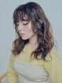 カールが柔らかく動くウェーブパーマスタイル。重めシルエットでも軽さとふわふわと動く質感が可愛いオシャレパーマスタイルです。