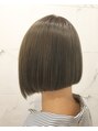 前下がりぱっつんボブです。首が細く長くキレイに見えるラインでカットしています。カラーは透明感たっぷりのラベンダーグレージュです。【LAIDBACK/デザインカラー/代官山/恵比寿/中目黒/渋谷】