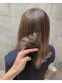 2回細めに多めハイライトをたっぷりいれたベースに今回はワンカラーで色を入れました。カラーはベージュアッシュ★色んな色が混じり透け感も綺麗!全頭ブリーチをしなくても明るさと透明感がだせます。カットは切りっぱなしの自然に肩について外ハネへ