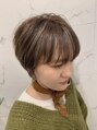 ショートスタイルにポイントでもみあげと前髪にさりげないハイライトをポイントでいれました。しっかり色を明るくし、アッシュベージュで黄色味を抑えました。ベースの色も10トーンなので奇抜過ぎない馴染むハイライトに☆【代官山 恵比寿 ハイライト】