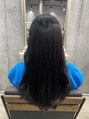 ツヤのあるブルーブラック☆ハイトーンからの冬カラーにイメチェンです!ワンレンロングだったので、顔まわりと全体に少しだけレイヤーを入れて動きをつけました。