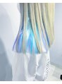全体は2~3回ブリーチしてホワイトベージュに染めています。インナーカラーはカラーバターでブルーと水色をミックスして染めました!チラッと見える2色のカラーがとってもかわいいです!