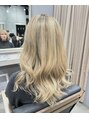 ハイライトを重ねて入れ続けた外国人風カラー☆上からブロンドをのせてツヤと陰影を付けました!カットは顔まわりから、顎ラインにかけて入れたレイヤーで外国人っぽいラフな動きをつけました!