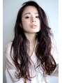 中間から大きめのロッドで柔らかくパーマをmix巻き。前髪をかきあげて作り込みすぎないラフさがポイント。カラーはツヤの出るものを♪