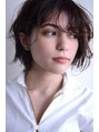 柔らかな動きのあるショートボブスタイル。シャツと合わせて清潔感のある印象を。前髪はおでこを見せるように散らして作るのがポイント