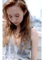 トップの方から大きめのウェーブパーマをかけ外国人に!透け感のあるアッシュベージュで柔らかい質感を。
