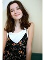 Aラインシルエットに中間から柔らかくパーマをかけたニュアンスウェーブのスタイルまとまりすぎない毛束が自然体に魅せる