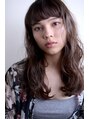 26mmのコテで作るゆるめのウェーブ スタイル。眉ラインの前髪は巻いてもストレートでも可愛いです!カラーは外国人の地毛のようなナチュラルなグレージュに。